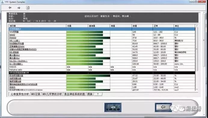12、自主神经活动状况:通过HRE系统检测,获得自主神经活动状况准确指示,激素水平变化趋向。